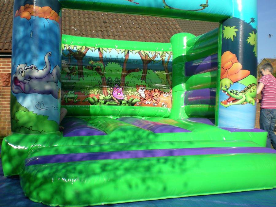 For youngsters we have our 12' x 16' celebration themed Bounce & Slide castle and two 12' x 12' Castles, one featuring a Princess theme and the other a Jungle scene which are available both for indoor or outdoor hire. For toddlers we have our Toddler Playzone, which is a single inflatable unit with a small bouncy castle, slide, air jets and a ball pond.